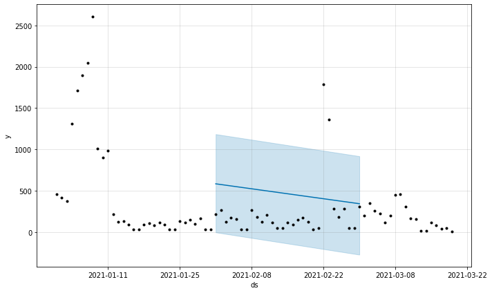 Using machine learning, a forecast was made for the number of adverse events reported with the system, which, being proportional, can also forecast future vaccination trends. A clear negative tendency is seen in this forecast, and this is due to both vaccination slowing down, as well as continuous improvement of vaccines and application protocols.