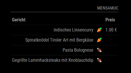 MagicMirror² Module to display daily menu information from the canteens of the Studierendenwerk München Oberbayern as well as some other canteens.