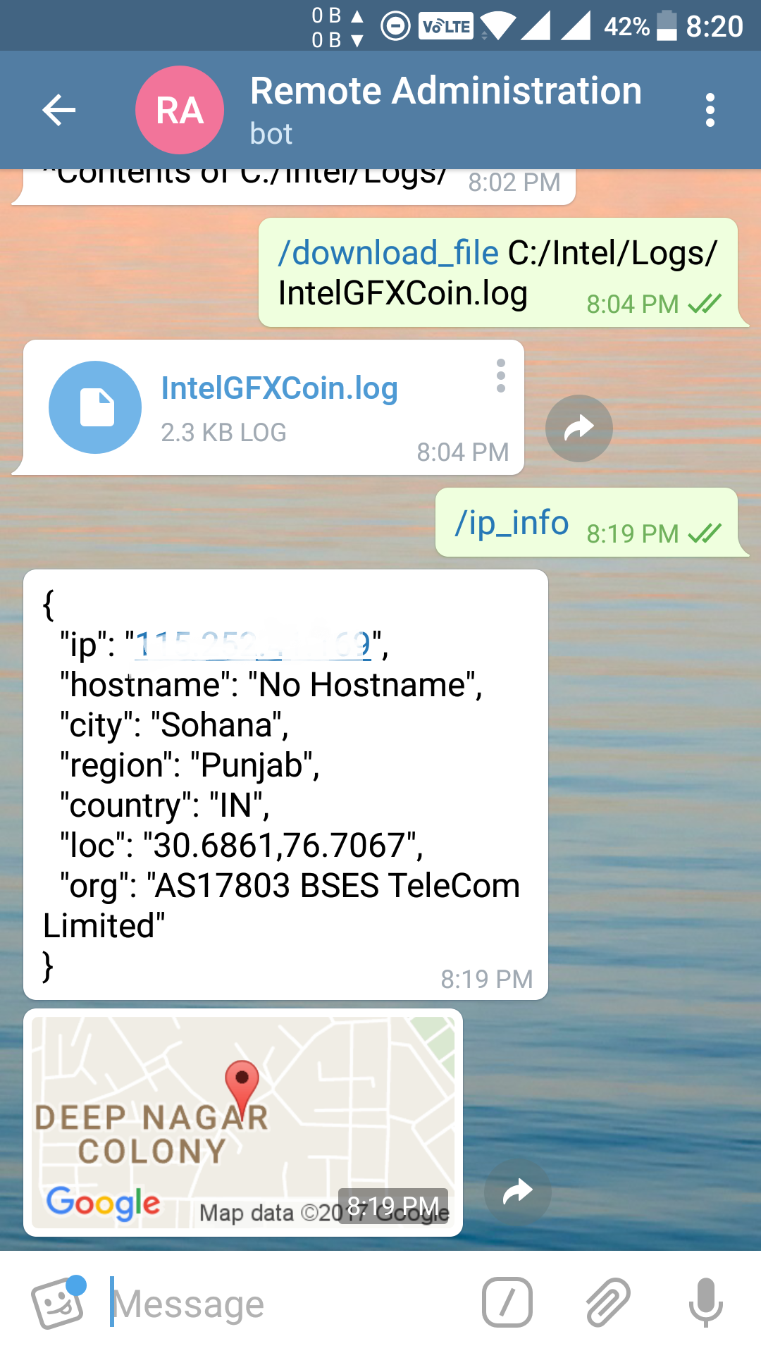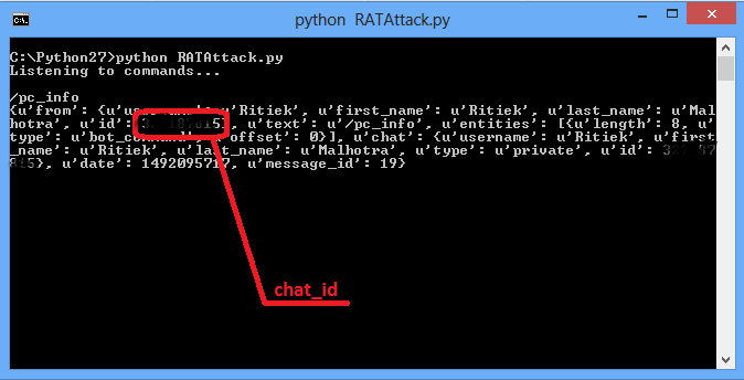 python RATAttack.py. - Find your bot on telegram and send some command to the bot to test it.