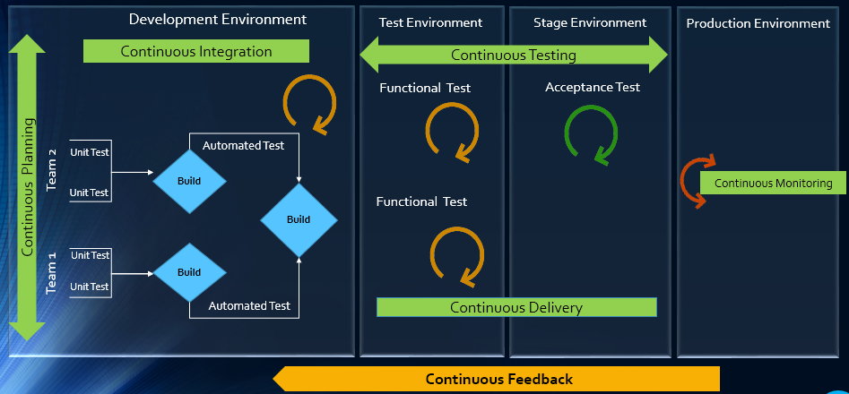 At certain times, you may even push the software to production-like environment to obtain feedback. This allows to get a fast and automated feedback on production-readiness of your software with each commit. A very high degree of automated testing is an essential part to enable Continuous Delivery.